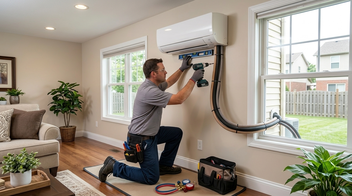 - Single-zone mini-split installation — one outdoor unit and one indoor head, ideal for additions, basements, or converted garages